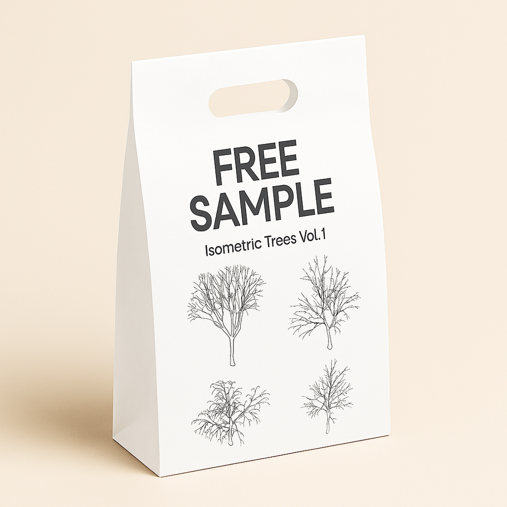 4 FREE SAMPLES of the "Isometric Trees Vol 1" package for Architecture Isometric and Axonometric Drawings.