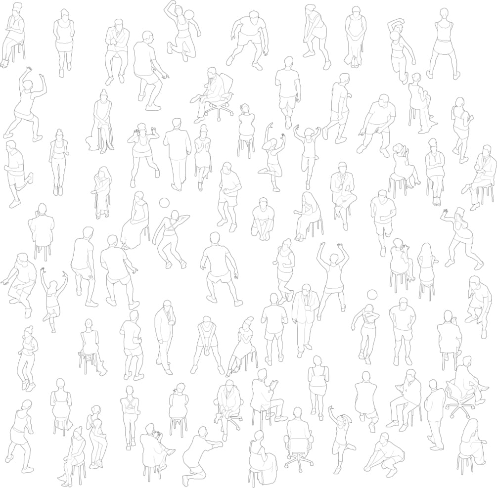 20 Human characters drawn in 4 different isometric positions and in 2 different graphic styles, making a total of 160 units. This volume contains sport, event, sit and office activities.