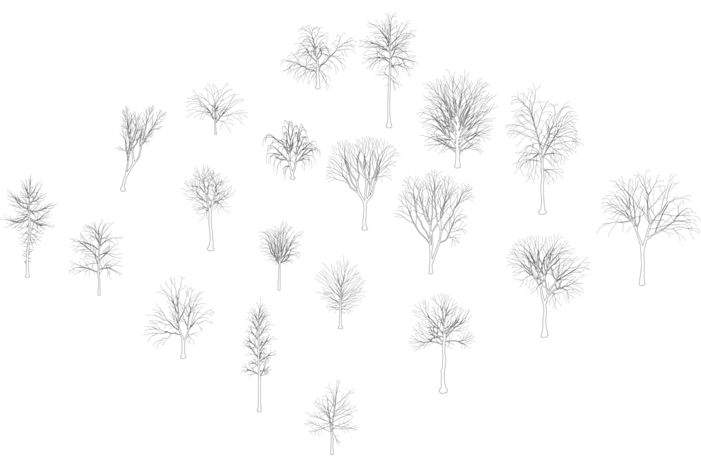 20 Simple and realistic drawings of trees.